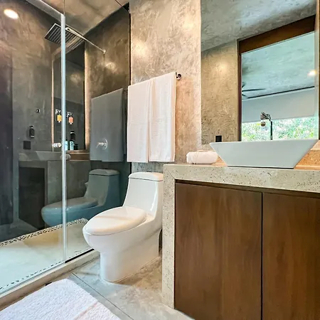 I servizi igienici della 3Br Gated Villa Private Pool, Gym & Shared Pool Best Area Tulum comprendono anche un bagno con WC separato e una doccia. L'asciugacapelli, gli essiccatori e i teli da bagno sono tra i comfort del bagno.